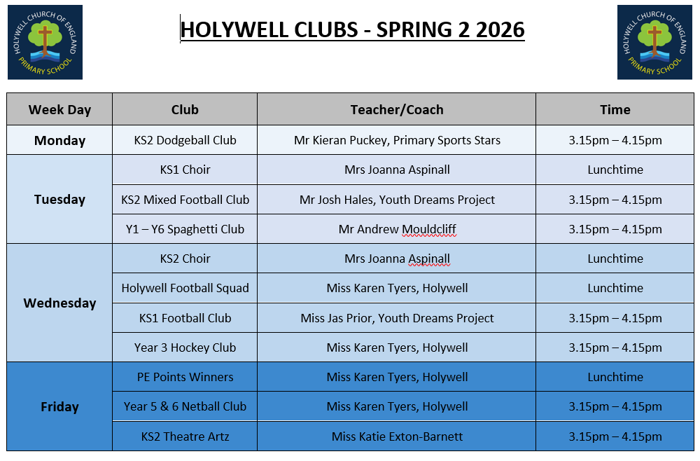 Holywell School offers a range of clubs, both at lunchtime and after school.